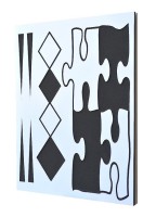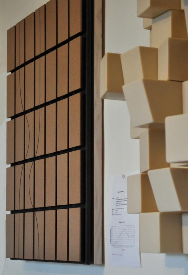 Construit en PVC peint, mousse de polyuréthane et support en bois et MDF. La plaque de PVC fixée sur son support en mousse va pouvoir vibrer et dissiper l’énergie.
