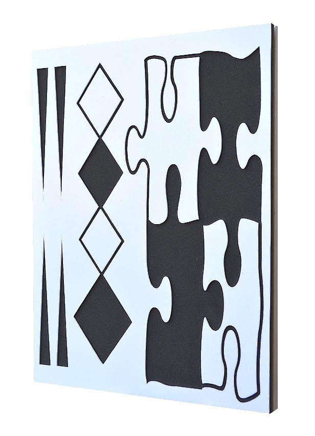 Fabriqué en mousse polyuréthane et MDF. Dimensions: 59,4 x 67,5 (56) x 5 cm Poids: <1 kg Fixation par 2 chevilles.