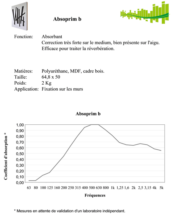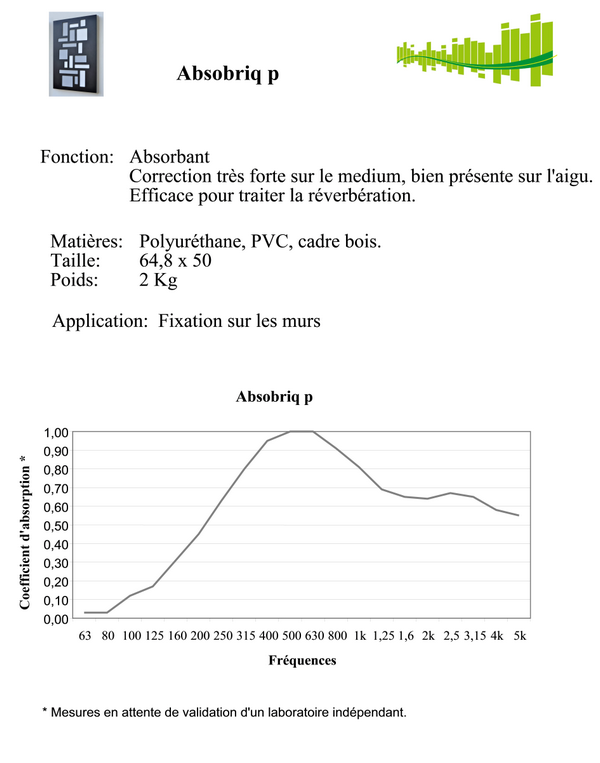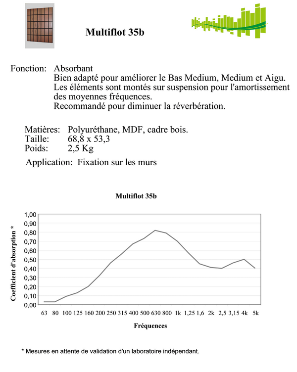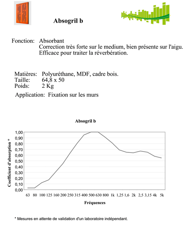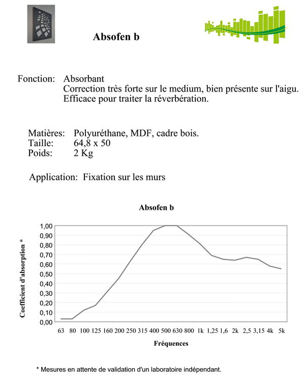 Panneau absorbant. Recommandé pour le medium et l'aigu.