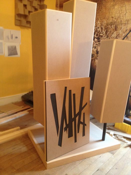 Nous collaborons avec un designer plasticien pour l'esthétique et avec un laboratoire de mesures pour valider la performance de nos panneaux.